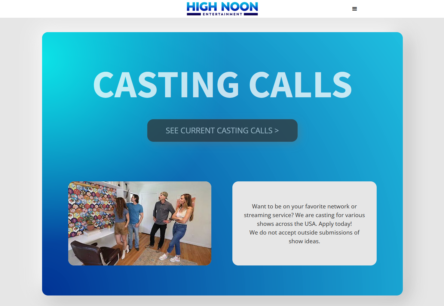 As part of the High Noon Entertainment logo redesign and brand refresh, I also created the new HighNoonTV.com website in Webflow. The new site features a friendly CMS for easier updating, staging site, and main features better aligned with the needs of the company and the core users of the website. Analytics from the previous Square Space website were used to make targeted design choices that resulted in a better user experience. The new site functions much better across multiple browsers and with SEO.